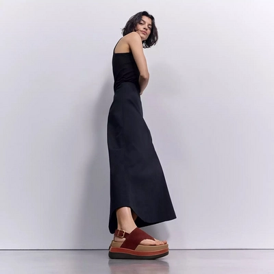 - Plateausohle mit höherem Absatz und skulpturalen Linien