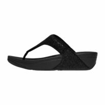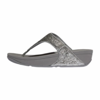 Slipper FitFlop Lulu Crinkled-Shimmer Toe-Post Sandals Damen Metallic Black